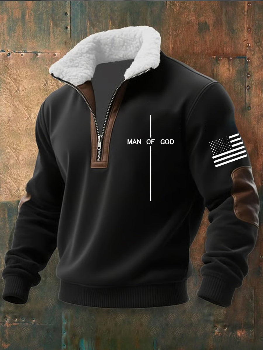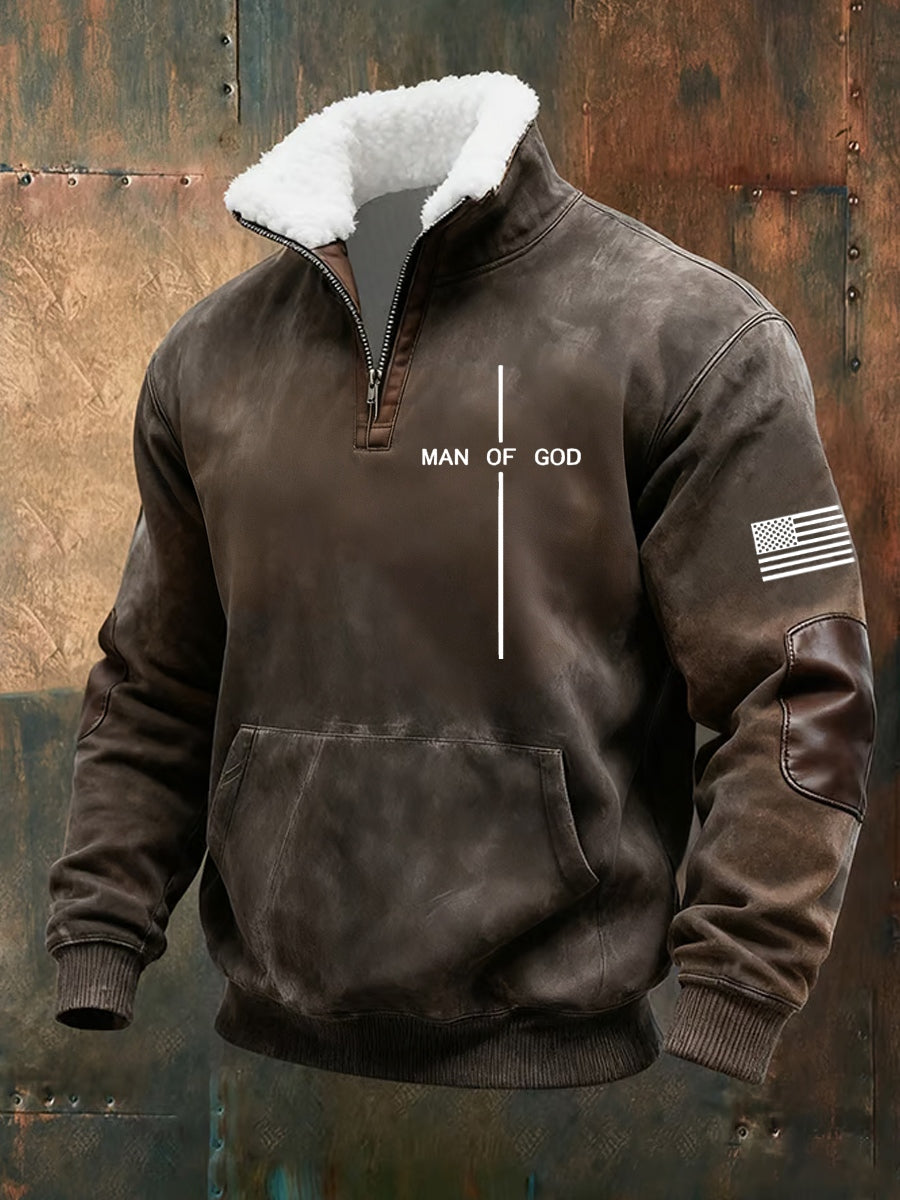 Férfi vintage művészet hit alkalmi bunda gallér vastag pulóver