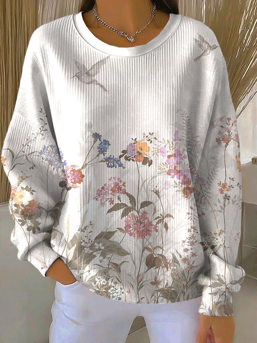 Női elegáns madár és virágos művészet alkalmi crewneck pulóver