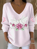 Női aranyos galamb hímzett világos rózsaszín v-nyak pulóver