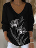Női európai stílusú fekete v-nyak pulóver high-end virágos hímzéssel, klasszikus és kényelmes, alkalmas a különböző napi jelenetek