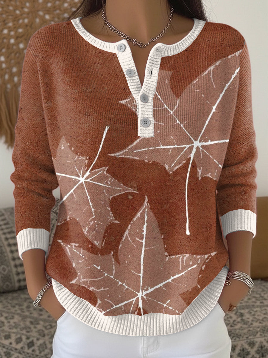 Női gesztenye juhar levél hálaadás henley nyak pulóver