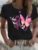 Női gradiens pillangó és szalag fekete kerek nyak rövid ujjú ing