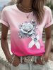 Női gyémánt rózsa és szalag gradient rózsaszín kerek nyak rövid ujjú ing