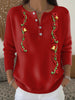 Női karácsonyi harang nyomtatás henley nyak pulóver