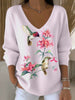 Női minimalista kolibri hímzett világos rózsaszín v-nyak pulóver