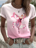 Női népszerű európai rózsaszín póló, édes balett lány és a mellrák megelőzése szalag design, divatos alkalmi top