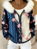 Női retro virágos művészet kényelmes plüss csuklyás kardigán
