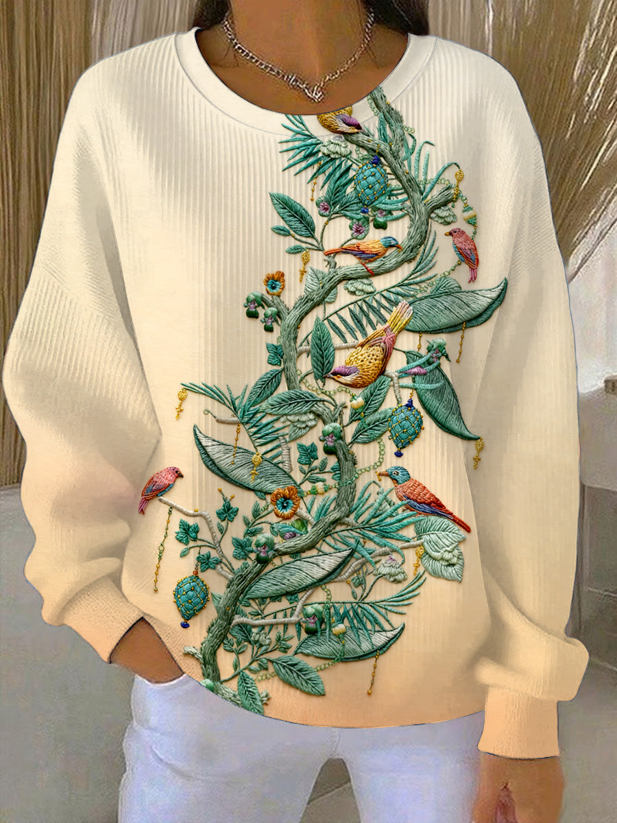 Női narancssárga gradiens hímzett személyzet nyak pulóver