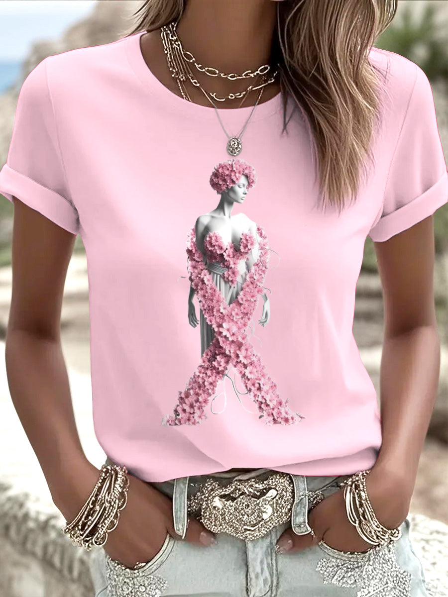 Női rózsaszín nyomtatott egyszerű póló