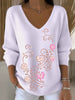 Női temperamentum rózsaszín virágos hímzés v-nyak pulóver