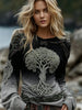 Női viking kelta csomó életfa gradiens nyomtatás hosszú ujjú pulóver