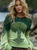 Női viking kelta csomó életfa gradiens nyomtatás hosszú ujjú pulóver