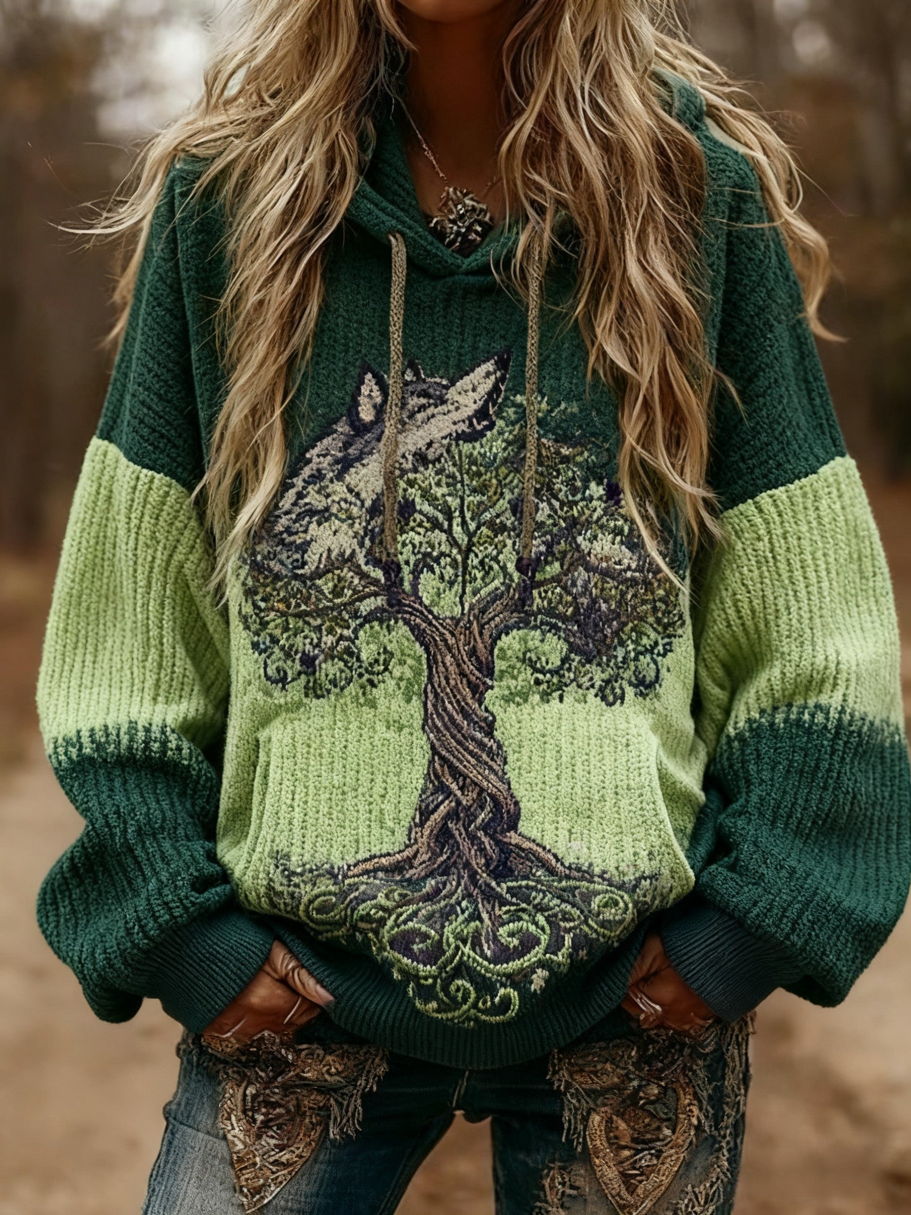 Női viking wolf kelta csomó az élet fája gradiens nyomtatás hosszú ujjú csuklyás pulóver