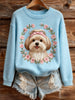 Női vintage art állat nyomtatás hangulatos kötött pulóver
