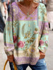 Női vintage bohém virágos művészet nyomtatás kényelmes pulóver felső