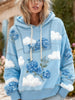 Női vintage virágos nyomtatás kényelem csuklyás pulóver
