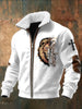 Retro oroszlán júda kereszt báránybőr gallér cipzáras kabát